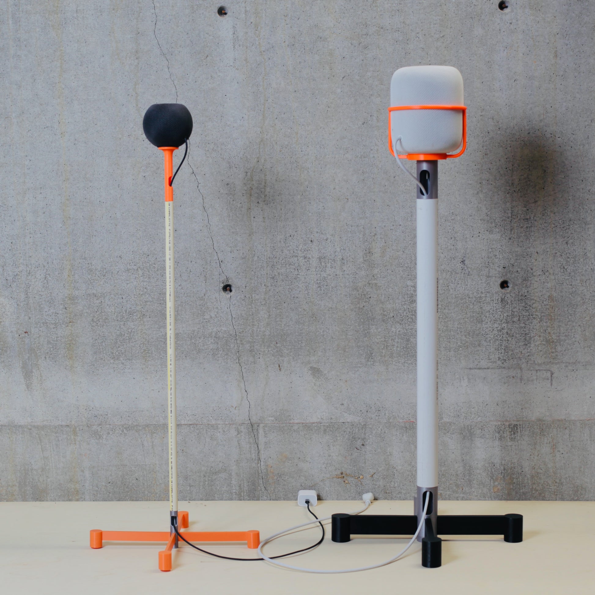 If you have access to a 3D printer and a hardware store that carries PVC pipe, screws, and nuts, you can make your own Homepod Classic stand. We provide you with STL files you can slice and send to your printer. Head to the NoBox blog for more detail and printing tips and tricks.